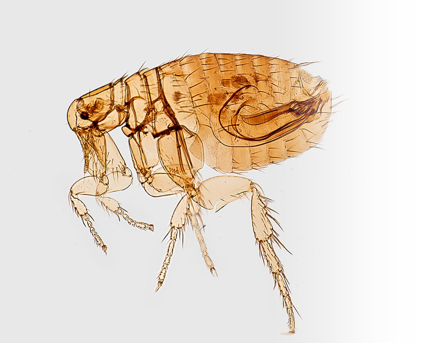 Fleas are tiny, wingless insects with flattened bodies, enabling them to move easily through fur or clothing. They have strong legs for jumping, making them hard to catch.